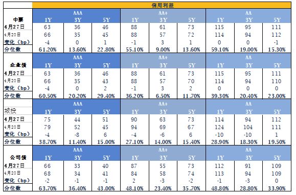 上周信用债一级发行量仍维持高位,发行量总量为2642亿,共发行273只信用债。市场对中高等级信用债需求仍强劲,但资质较弱发行主体受资金紧张影响需求走弱。取消和推迟发行数量上周大幅增加,主要为短久期、弱资质民企、城投和地产债。二级方面,上周信用主要也因资金面受缴税和跨月冲击,宽松不及预期,持续平盘艰难和居高不下的资金成本,令加杠杆的需求有所减少,信用债收益率整体平坦化上行。上周AAA中票1Y较前一周上行14BP至4.4257%,3Y和5Y上行15BP和12BP至4.58%和4.76%;AAA公司债1Y上行15BP至4.44%;3Y和5Y分别上行10BP和8BP至4.52%和4.69%。AA城投债1Y上行12BP至4.98%,3Y和5Y分别上行5BP、12BP至5.16%和5.44%。
