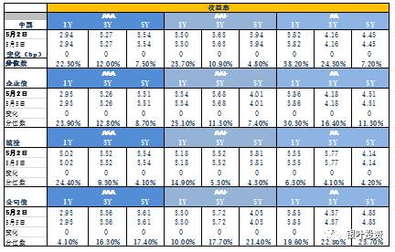 信用债方面,上周一级发行进一步萎靡,新债发行规模仅598亿,一方面与五一假期导致交易日缩短有关,另一方面,与配置需求减弱,企业发债融资成本上升有关。上周无企业债发行,公司债共发行5只,总规模为70.7亿元, 5只均为私募债;从评级来看3只AAA级、2只AA级;短融新债供给308亿,较前一周下滑41%,综合到期量,短融上周净融资为负;中票融资规模达270亿,综合到期量,中票净融资上周达87亿。另外,上周信用债取消发行量继续攀升至206亿,包括短融中票、企业债和公司债。目前上市公司年报和1季报已披露,显示因融资成本上升,企业融资渠道由发债转向贷款,建议关注滚动发短债的低等级融资主体。