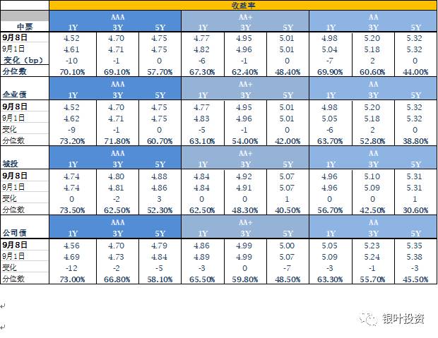 信用债短端收益率下行,长端基本与上周五持平。一级净融资量连续两周为负,明显低于8月水平。