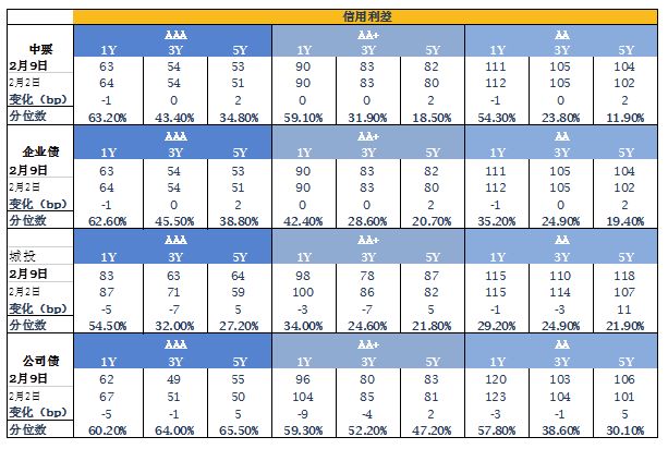 上周资金面持续宽松,短端继续下行,长端主要受美股美债波动影响。周二夜间美国股市暴跌,全球避险情绪上升,美债也因此大涨,在没有其他因素边际变化影响下,国内债市也被带动收益率明显下行。随后美股暴跌带来的利好逐渐消化,此外在1月进出口数据大幅超预期向好的压制下,周四国内债市再次下挫。周五隔夜美股再次大幅下跌,但对美债以及国内债市影响减弱,美债收益率没有明显下行,国内债市震荡小幅下行。上周一级方面共发行19只国债和政金债,净融资747.2亿,需求较好。二级上周利率债收益率曲线整体小幅下行。国债收益率曲线1Y收益率下行4.66BP至3.3938,10Y收益率下行2.92BP至3.88%,国开债1Y收益率下行3.49BP至4.2411%,10Y收益率下行10.80BP至4.94%。上周有媒体报道称监管层或对农商行等农村金融机构在区域分支机构设立、表外理财上继续强化监管;在区域经营上以本地为主,贷款不能出县,资金不能出省,在同业和表外理财上继续去杠杆。此外,资管新规大概率将在两会附近落地,监管政策仍存在一定不确定性。