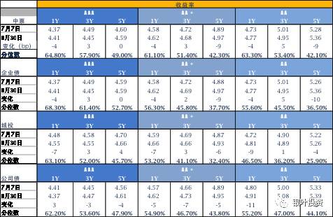 信用债方面,上周央行暂停逆回购操作,但流动性仍宽松,信用债短端受此影响继续向下调整,中低等级信用债3Y期因上周已有较大幅度下行,上周有所回调,5Y期限下行幅度较大。 信用利差方面,除中低等级5Y信用利差收窄外,高等级债信用利差被动走阔。中债中短期票据AAA曲线5Y收益率上行0.49BP至4.60%,中债企业债AAA曲线5Y收益率下行0.01BP至4.59%,公司债AAA曲线5Y收益率下行4.4BP至4.56%;中债中短期票据AA曲线5Y收益率下行8.51BP至5.28%,中债企业债AA曲线5Y收益率下行10BP至5.26%;城投债AA曲线5Y收益率下行3.58BP至5.22%,公司债AA曲线5Y收益率下行6.21BP至5.33%。