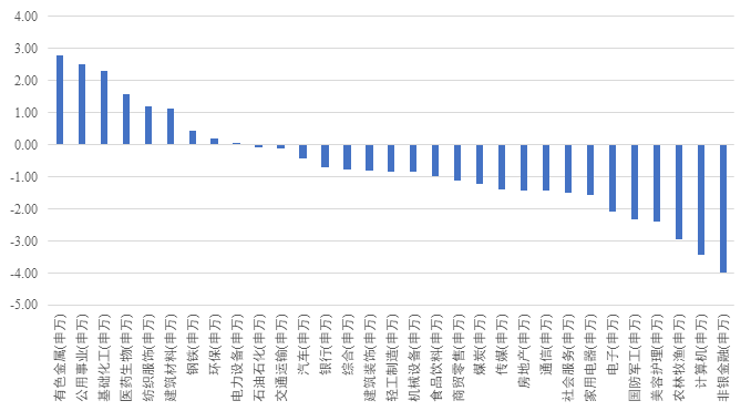 国内债券收益率走势分化。信用利差大幅收窄, 3-5 年城投债为代表的信用收益率在固收 + 产品大幅流入市场的影响下,出现大幅下行。期限利差走扩, 30 年国债收益率上行 8BP , 5-10 年股债震荡走平, 3 年国债收益率大幅下行,主要原因是配置资金、机构避险需求、流动性宽松预期带动短端收益率持续走低,但超长端利率水平配置力量有限、供给压力较大影响,下行难度较大;同时超长端利率还受到资金结构的影响,去年至今规模大幅增长的宏观基金股债双多的仓位在 3 月波动率大幅上升的情况下,为了控制波动和净值回撤,同时缩减风险敞口, TL 的下跌压力加大,同时带动了市场交易性资金利率定价向通胀预期方向偏移。债市面临一个尴尬的境地,一方面是长期通胀预期的担忧形成收益率压制,另一方面是短期经济基本面仍然偏弱和资金宽松带来的多头动力,当前很难形成一致预期,因此债券收益率仍然会维持区间震荡的格局,等待新的共识形成。权益资产方面, 3 月的表现更多体现为 1-2 月由于 gjd 减持造成的市场筹码结构整体性恶化,在伊朗战争因素的冲击下,快速的兑现在价格中,形成了 A 股一度走势呈现非常快速的下跌。市场传闻的保险减仓行为可能真实存在,但实际边际影响更大的是类似年金账户这类绝对收益机构,在今年一季度以来市场板块轮动快、交易难度大、结构分化严重的情况下,安全垫在下跌过程中很快被击穿,一致性的高仓位和一致性的破净造成一致性的减仓行为发生,使得市场下跌更加猛烈,呈现出无论是否受益,价格都泥沙俱下。全月来看,板块上只有电力、油气煤炭、新能源、 CPO 正收益,但期间的波动异常剧烈,赚钱难度极大。这里出现短期超跌反弹的修复之后,短期的流动性止损冲击结束,后续会进入中期筹码结构重新均衡,市场风偏震荡收敛的过程,不排除指数仍然会有下跌空间。同时又在流动性充沛的环境下,国家队持续托底,出现深度回调的概率也并不高。总体市场基调转入防守、回调、修正。板块结构上,从美股映射角度看,科技板块存在一定的调整压力,虽然板块景气度仍然维持高位,但海外的估值中枢在下移;海外的化工和油气板块都创出了新高,表现强势,对国内资产的映射对应为煤炭、油气、新能源等,化工板块存在一定分歧,但长期看煤化工和具备生产成本优势的企业值得长期关注。国内通胀路径上,养殖板块作为防御性板块,存在一定的博弈机会,长期产业趋势上,能看到行业在下半年加速去产能,如果叠加反内卷政策预期,可能时间上还会提前。本周商品主线依旧围绕地缘供应链及对经济阶段的预期,文华商品指数周度上涨 1% ,以新能源、煤炭、化工等板块强势领涨,周度内地缘矛盾不断升级,能源安全成为阶段性的交易主线,现阶段市场似乎进入“滞胀”交易的第一阶段,目前从宏观数据上看,衰退存在预期但未清晰证是,市场主要交易由供给端矛盾引发的能源上涨所导致的“胀”,预期下游会被动补库做第一轮的顺价,是否能进入以下游顺价不畅、高价原材料导致的工业需求承压为特征,进一步引发系统性衰退的第二阶段尚不明确,在储能增量预期和本身供给偏紧的逻辑下,碳酸锂近期价格企稳快速回升,黑色链则在地缘能源替代以及煤化工增量的预期下,强势走出涨停,但在近月供强需弱的实际基本面和仓单价格的逻辑下,上涨动力还不充分,后半周承压走弱,后续需关注地缘变化,以及 4 月以来国内价差、电厂补库以及大秦线检修等因素导致供需的边际变化;对于工业金属,整体上处于经济衰退预期和流动性收紧对工业金属的利空叠加部分细分品种的供应链扰动的利多阶段,整体去库的节奏并不是很顺畅,但因几座大型铝厂遭到轰炸,市场对供应链扰动的定价会愈发显著,而当下市场对潜在的经济衰退风险定价尚不充分,因为工业金属阶段性或企稳回升;对于建材系,供给偏强以及库存偏高仍然压制价格表现,后续关注产能端的出清方式以及需求端是否会有改善。