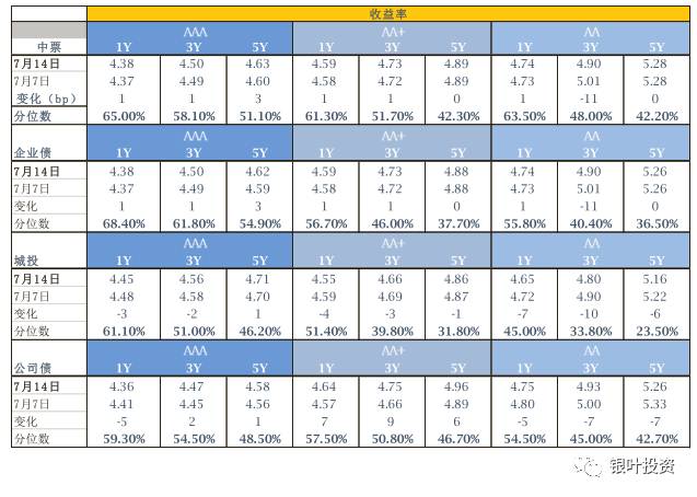 信用债方面,在资金面预期稳定的市场整体影响下,信用债继续走强,收益率普遍下行。其中,中短票和企业债整体波动不大,城投表现较好,低等级表现强于高等级,短端好于中长端。中债中短期票据AAA曲线5Y收益率上行3BP至4.63%,中债企业债AAA曲线5Y收益率上行3 BP至4.63%,城投债AA曲线5Y收益率下行6BP至5.16%,公司债AA曲线5Y收益率下行7BP至5.26%。