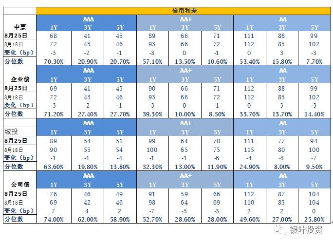 上周债市在监管预期升级、大宗强势,以及资金面紧张程度超预期的多利空因素交织影响下,收益率震荡上行,10Y国债收益率上行4BP左右,10Y国开上行8BP左右。信用债方面,各等级期限收益率均有上行,其中城投债短端收益率上行幅度较长端更为显著;高等级公司债各期限上行幅度最大。信用利差以及等级利差方面,多数等级以及期限债券的信用利差均出现进一步收窄。